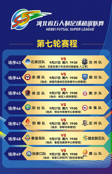 9月27日,“河北五超”第七轮比赛即将激情上演,本轮比赛看点十足,各支球队都将为了城市的荣誉全力以赴。