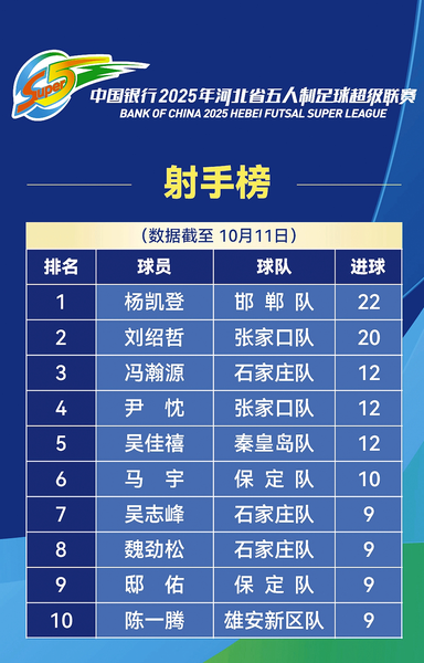 射手榜上,邯郸队的杨凯登以22粒进球领先,稳居首位,但刘绍哲等球员紧随其后,后续比赛中,射手榜的排名仍存在较大的变数,各位射手的竞争将持续为联赛增添看点。