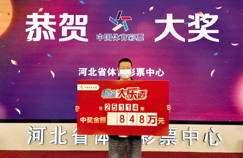 ■大奖得主开心领奖。 体彩中心供图 本报讯 10月8日晚,超级大乐透第25114期开奖,前区号码为03、08、09、12、16,后区号码为01、05。其中1注一等奖花落河北石家庄,出自1301003425体彩代销网点,奖金848万元。