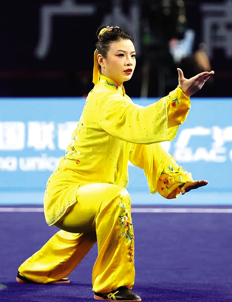 女子太极拳太极剑全能赛事分太极拳、太极剑两个阶段展开,两项目得分相加决定最终排名,对选手的技术精度与心态稳定性提出双重要求。