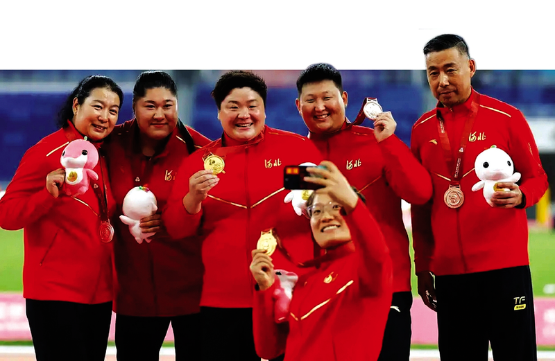 ■冠军巩立姣(左三)、亚军张林茹(左二)和季军马越(右二)以及教练在颁奖仪式上。 新华社 第十五届全运会田径项目在广东奥体中心圆满落幕,河北田径队以1金3银5铜的战绩圆满收官,奖牌总数与上届持平。本届赛事中,河北队在铅球、短跑、跨栏、跳高及接力项目多点开花,既有奥运冠军的稳定领衔,也有新生代选手的强势突围,既延续了传统优势项目的荣光,更在多个项目刷新历史最佳成绩,充分展现了队伍深耕青训、传承技术的深厚底蕴与蓬勃向上的发展态势。