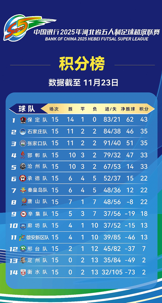邯郸队、沧州队以33分排位四、五名,巩固了积分榜中游位置;唐山队通过阵容补强取得大胜后,同承德队、秦皇岛队一起,以积22分的战绩在卡位战中占据有利位置。廊坊队、衡水队等队伍则需总结经验,在后续赛事中全力追赶以提升排名。