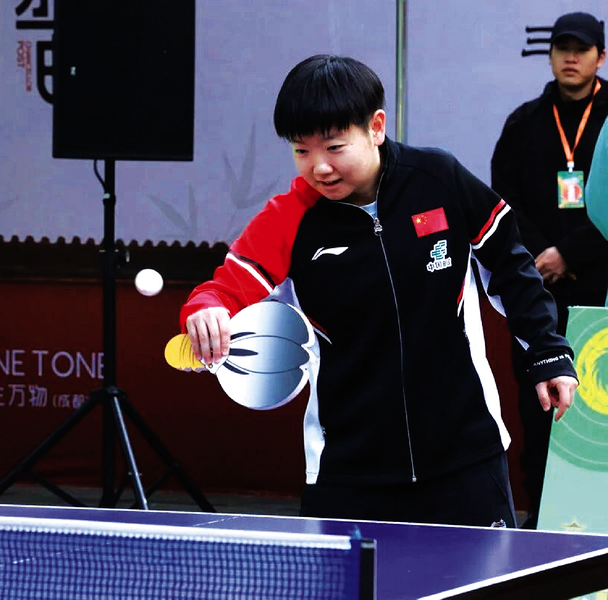 混双黄金搭档在场下展现了与赛场截然不同的轻松面貌。在古意盎然的武侯祠,孙颖莎接过一柄仿诸葛亮羽扇造型的球拍,与市民爱好者过招。几个回合后,她悄然改变了节奏,一记迅捷的突袭让对手措手不及,随即又恢复温和的“喂球”模式,引来一片会心的笑声与掌声。