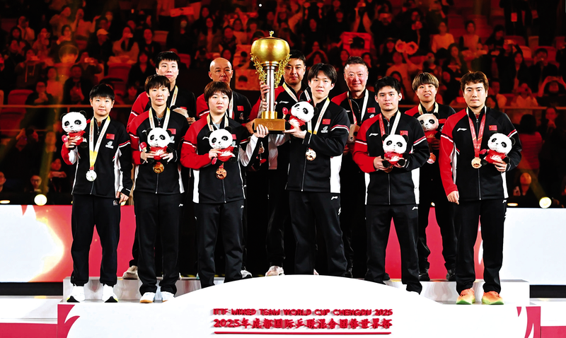 本报讯 12月7日,2025年国际乒联混合团体世界杯在成都落下帷幕。中国队在决赛中以8比1的绝对优势战胜日本队,以全胜战绩成功卫冕,实现了自2023年赛事创立以来的三连冠。在本届赛事的夺冠征程中,河北运动员孙颖莎、梁靖崑作为团队的重要成员,发挥了关键作用,为这支荣耀之师贡献了坚实的燕赵力量。