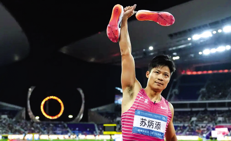 “当我把钉鞋举起来的那一刻,我知道,是时候为这段漫长的奔跑岁月画上句号。”苏炳添在退役长文中写道。他的跑道故事始于2004年,15岁的青涩少年离家开启田径生涯,从2009年入选国家队至今,他征战三届奥运会、六届世锦赛,用13次跑进10秒大关(合法风速内10次)的战绩。2021年东京奥运会百米半决赛,32岁的他以9秒83大幅刷新亚洲纪录,成为首位闯入奥运男子百米决赛的中国人,随后带领接力队夺得男子4×100米接力铜牌(递补),创造中国该项目奥运最佳战绩,打破了“黄种人不擅长短跑”的刻板印象。